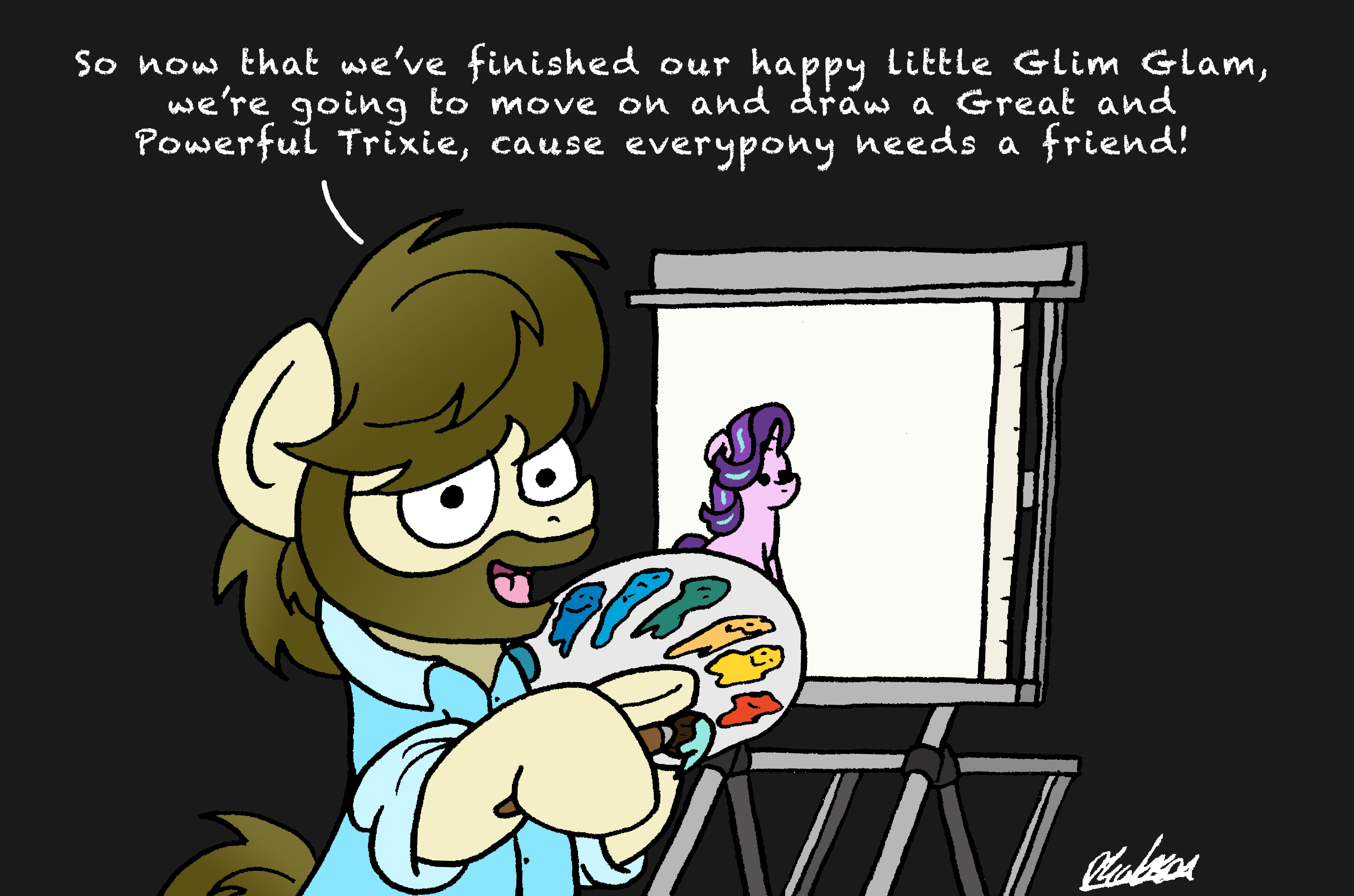Something like a comic creator that people could use without drawing skills would take some time to make, but provide effort-free means of creating content for those who either can't draw or don't want to spend time on it. The Pony Comic Generator shows how much content comes out of even a completely random program, so a tool fans could use to deliberately create comics would definitely help a lot.