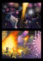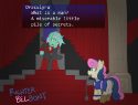 In the following nights, the human meets with his new friends and discusses things like stallion's rights, forbidden magics and moon banishments, until the ponies become fully determined to fight for the liberal cause. Their movement starts off mildly enough with things like demonstrations, enacting a guard-beatdown and disturbing a party, but as the liberal ponies convince more ponies to their side the movement becomes more and more radical.