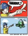 >Surprised by the violence, the ponies run away screaming. Victory!